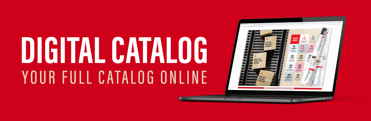 Get YOUR digital version of the full 480-page catalog featuring over 20,000 items at no cost to YOU! Showcase YOUR huge selection of packaging, shipping, and industrial supplies to YOUR customers with this easy-to-use digital page-turner. Simply place a single link, we’ll provide you, on YOUR website. YOUR digital catalog will be personalized with YOUR company information only on the bottom of each page.