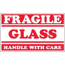 3 x 5" - "Fragile - Glass - Handle With Care" Labels