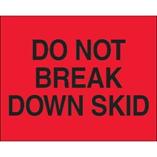8 x 10" - "Do Not Break Down Skid" (Fluorescent Red) Labels