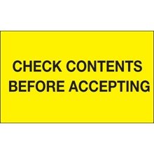 3 x 5" - "Check Contents Before Accepting" (Fluorescent Yellow) Labels