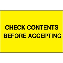 4 x 6" - "Check Contents Before Accepting" (Fluorescent Yellow) Labels