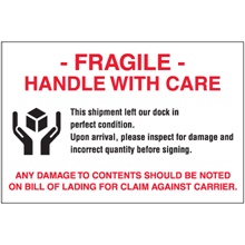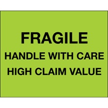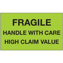 3 x 5" - "Fragile Handle With Care - High Claim Value" (Fluorescent Green) Labels