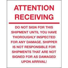 8 x 10" - "Attention Receiving - Do Not Sign For This Shipment" Labels
