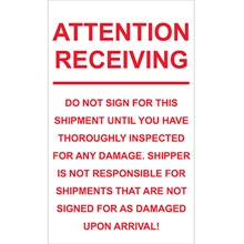 6 x 10" - "Attention Receiving - Do Not Sign For This Shipment" Labels