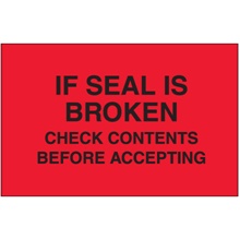 3 x 5" - "Check Contents Before Accepting" (Fluorescent Red) Labels