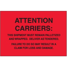 4 x 6" - "Must Remain Palletized" (Fluorescent Red) Labels