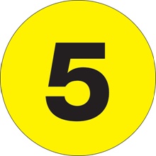 1" Circle - "5" (Fluorescent Yellow) Number Labels
