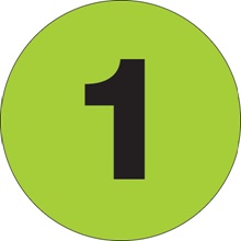 1" Circle - "1" (Fluorescent Green) Number Labels