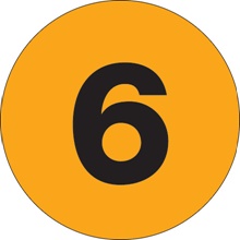 1" Circle - "6" (Fluorescent Orange) Number Labels