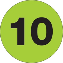 1" Circle - "10" (Fluorescent Green) Number Labels