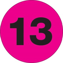 1" Circle - "13" (Fluorescent Pink) Number Labels