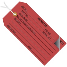 4 3/4 x 2 3/8" - "Rejected" Inspection Tags 2 Part - Numbered 000 - 499 - Pre-Strung