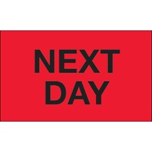3 x 5" - "Next Day" (Fluorescent Red) Labels