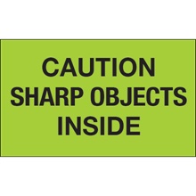 3 x 5" - "Caution Sharp Objects Inside" (Fluorescent Green) Labels