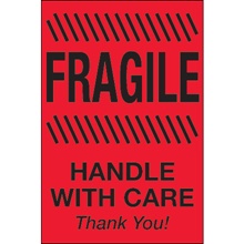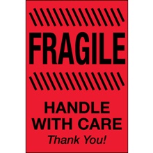 2 x 3" - "Fragile - Handle With Care" (Fluorescent Red) Labels