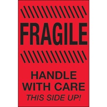 4 x 6" - "Fragile - Handle With Care - This Side Up" (Fluorescent Red) Labels
