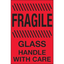 3 x 5" - "Glass - Fragile" (Fluorescent Red) Labels