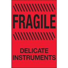 4 x 6" - "Fragile - Delicate Instruments" (Fluorescent Red) Labels
