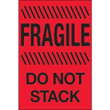 4 x 6" - "Fragile - Do Not Stack" (Fluorescent Red) Labels