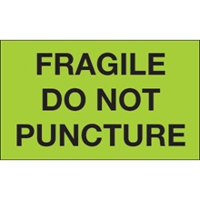3 x 5" - "Fragile - Do Not Puncture" (Fluorescent Green) Labels