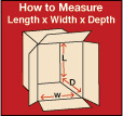 Corrugated cartons’ measurements are shown as L x W x D. The length is the